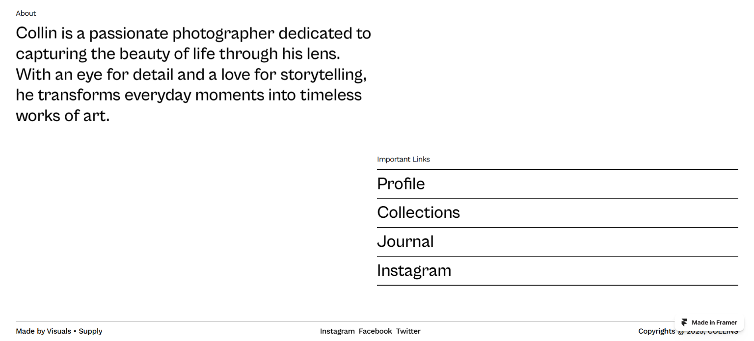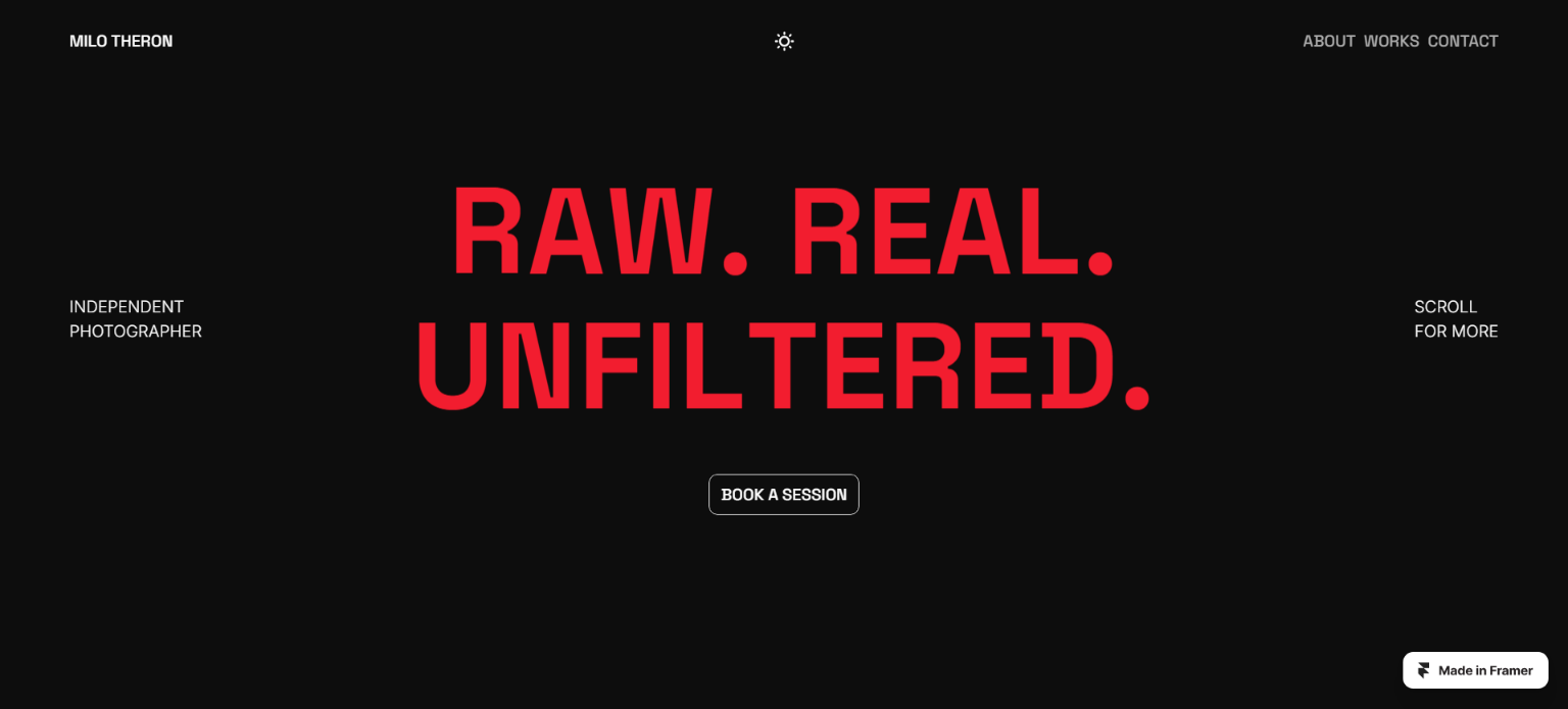 Designed specifically for photographers and visual artists. This refined template combines bold layouts with elegant interactions, creating an immersive experience that lets your images do the talking. Minimal yet captivating.