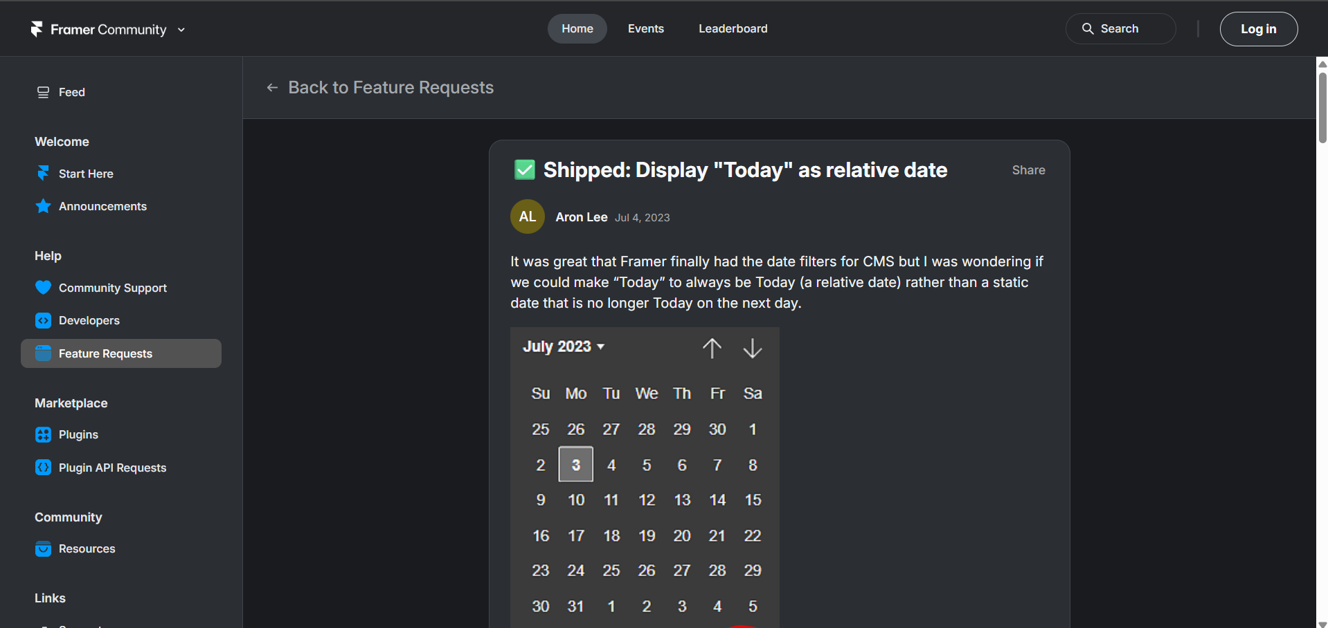 - Framer Community – “Shipped: Display ‘Today’ as relative date” feature request and announcement thread